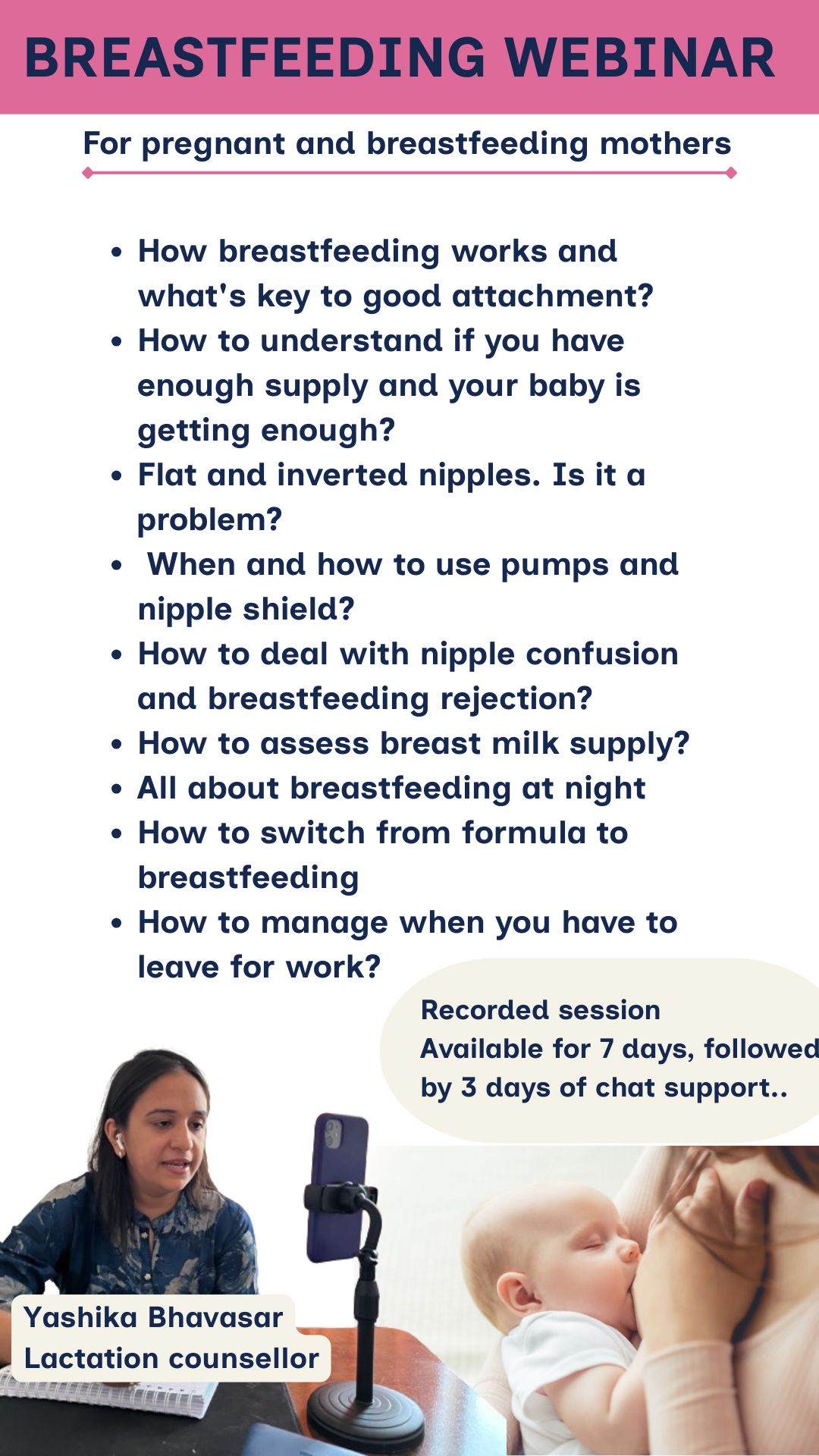 Join our Recorded Webinar designed especially for mothers facing breastfeeding challenges. Learn practical, evidence-based tips to improve latching, milk supply, and overall feeding confidence.